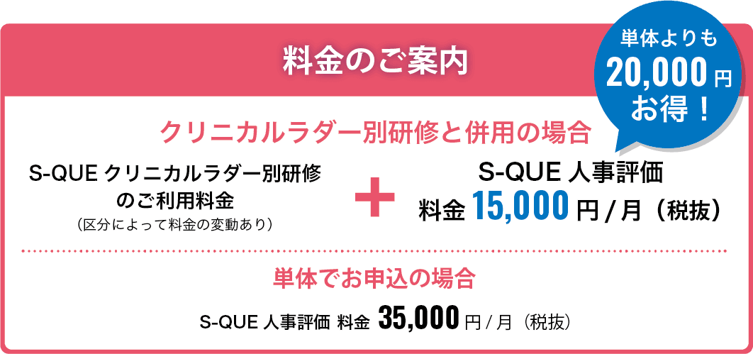 看護師向け 全職員向け 救命救急士向け 愛玩動物看護向け ご希望のプログラム(またはコンテンツ)をお選びください↓ 複数プログラムお申し込み クリニカルラダー別研修 マネジメントラダー別研修 新人看護職員研修 看護師特定行為研修 S-QUE人事評価 看護補助者の更なる 活用のための『院内研修』 S-QUE訪問看護 複数プログラムお申し込み クリニカルラダー別研修 マネジメントラダー別研修 新人看護職員研修 看護師特定行為研修 S-QUE人事評価 看護補助者の更なる活用のための『院内研修』 患者説明かんたん動画作成サービス 必須研修 ケアスタッフ向け研修 S-QUE訪問看護 改正救急救命士法施行に伴う必須項目講義 愛玩動物看護ラダー別研修 S-QUE人事評価 無料お試し お問合せ ご希望のプログラム(またはコンテンツ)をお選びください↓ 患者説明かんたん動画作成サービス 必須研修 ケアスタッフ向け研修 クリニカルラダー別研修 マネジメントラダー別研修 新人看護職員研修 看護師特定行為研修 S-QUE人事評価 看護補助者の更なる活用のための『院内研修』 患者説明かんたん動画作成サービス 必須研修 ケアスタッフ向け研修 S-QUE訪問看護 改正救急救命士法施行に伴う必須項目講義 愛玩動物看護ラダー別研修 S-QUE人事評価 無料お試し お問合せ ご希望のプログラム(またはコンテンツ)をお選びください↓ 改正救急救命士法施行 に伴う必須項目講義 クリニカルラダー別研修 マネジメントラダー別研修 新人看護職員研修 看護師特定行為研修 看護補助者の更なる活用のための『院内研修』 必須研修 ケアスタッフ向け研修 S-QUE訪問看護 改正救急救命士法施行に伴う必須項目講義 愛玩動物看護ラダー別研修 S-QUE人事評価 無料お試し お問合せ ご希望のプログラム(またはコンテンツ)をお選びください↓ 愛玩動物看護ラダー別研修 クリニカルラダー別研修 マネジメントラダー別研修 新人看護職員研修 看護師特定行為研修 看護補助者の更なる活用のための『院内研修』 必須研修 ケアスタッフ向け研修 S-QUE訪問看護 改正救急救命士法施行に伴う必須項目講義 愛玩動物看護ラダー別研修 S-QUE人事評価 無料お試し お問合せ 1年毎の契約となります。契約に変更がない場合は自動更新されます 支払い方法は一括、月額払いから選べます お申込みの流れ 受講手続きや受講料金の支払い方法などの詳細は、申込み後2営業日以内にメールにてご案内いたします。 01お申込み 02ID・パスワードを発行 必要な書類をお送りいたしますので、ご記入ください。 03ご利用開始 ログインに必要な情報を人数分用意いたします。 FAXでお申込みの方は申込書PDFをダウンロードしてお申込み下さい。(FAX:03-6272-8426) お申込みフォーム 必須施設名 必須担当者氏名 必須フリガナ 必須部署/役職 必須郵便番号 必須都道府県 選択してください 北海道 青森県 岩手県 宮城県 秋田県 山形県 福島県 茨城県 栃木県 群馬県 埼玉県 千葉県 東京都 神奈川県 新潟県 山梨県 長野県 富山県 石川県 福井県 岐阜県 静岡県 愛知県 三重県 滋賀県 京都府 大阪府 兵庫県 奈良県 和歌山県 鳥取県 島根県 岡山県 広島県 山口県 徳島県 香川県 愛媛県 高知県 福岡県 佐賀県 長崎県 熊本県 大分県 宮崎県 鹿児島県 沖縄県 必須市町村番地 必須電話番号 必須メールアドレス 必須メールアドレス再入力 必須利用開始月 年を選択してください 2025 2026 月を選択してください 1月 2月 3月 4月 5月 6月 7月 8月 9月 10月 11月 12月 任意備考 プライバシーポリシー を一読のうえ、確認画面へお進みください。 入力内容を確認 お申込み 個別説明会 無料お試し