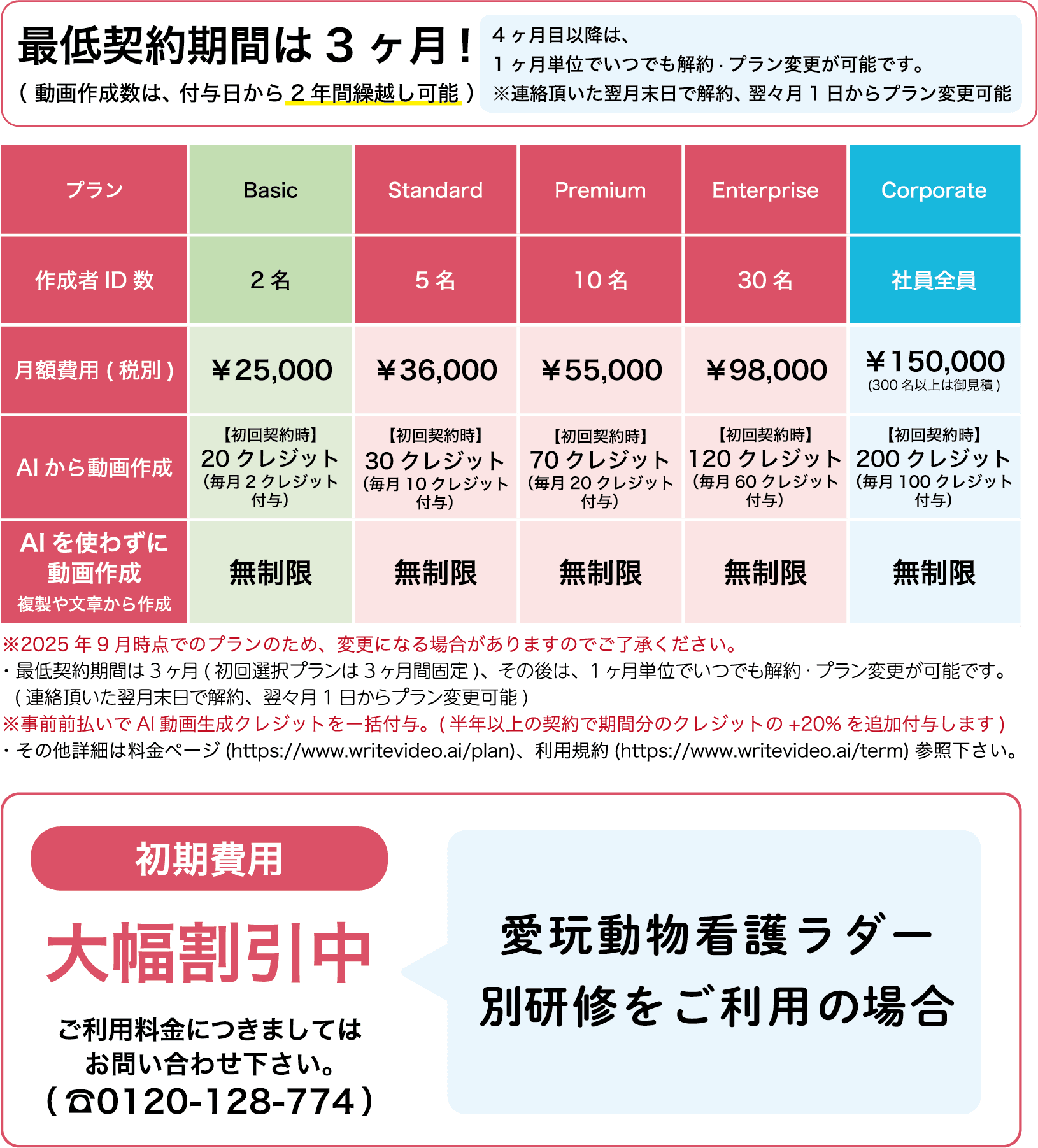 ・1年毎の契約となります。契約に変更がない場合は自動更新されます